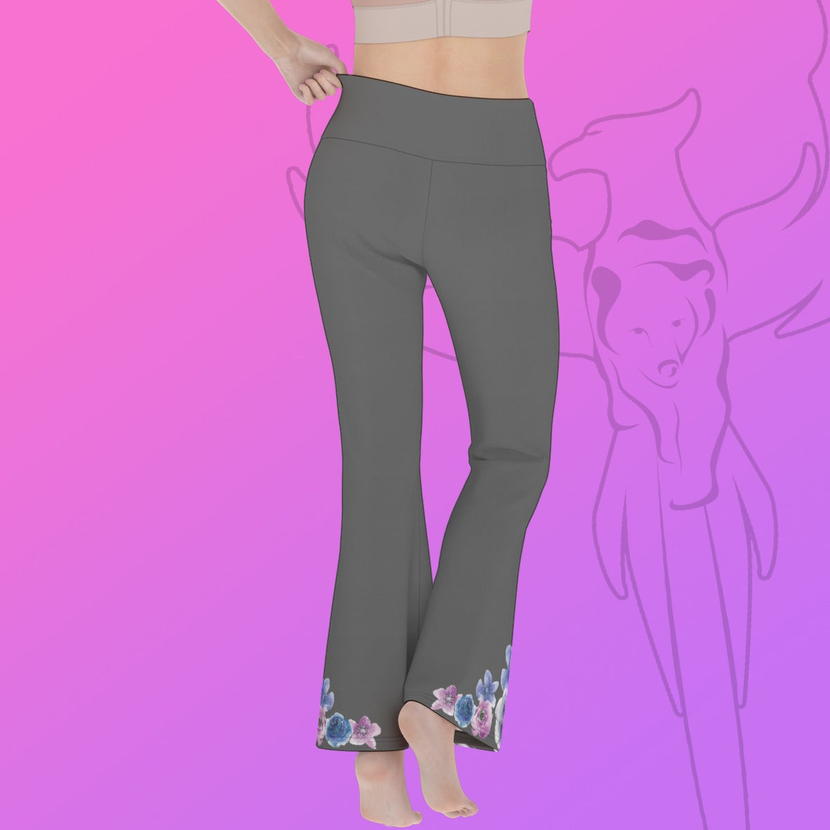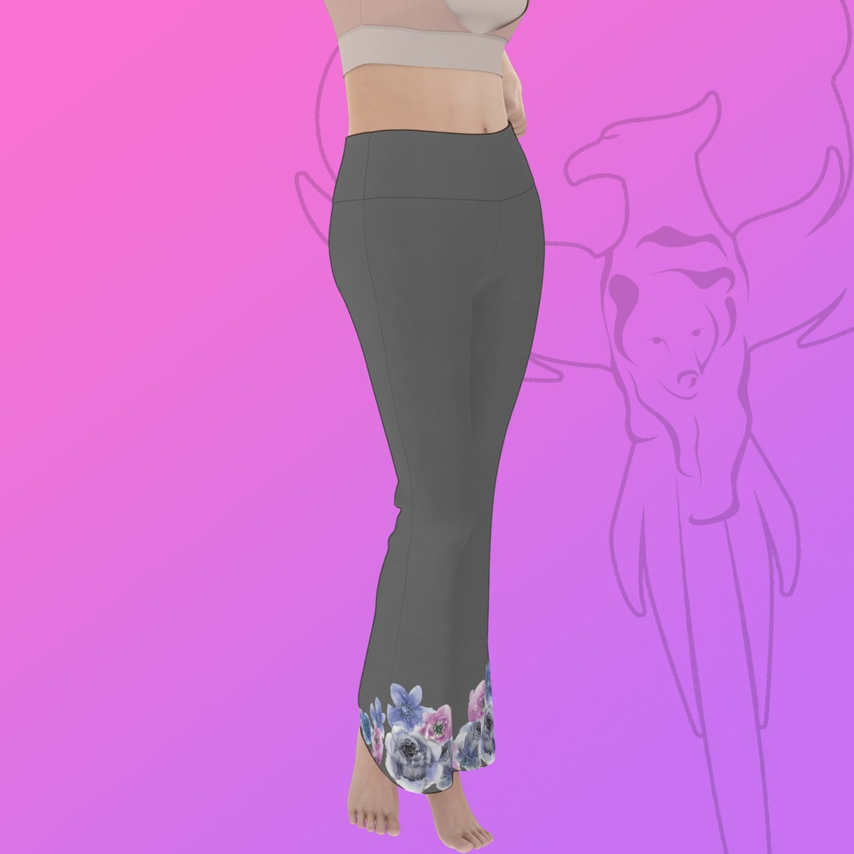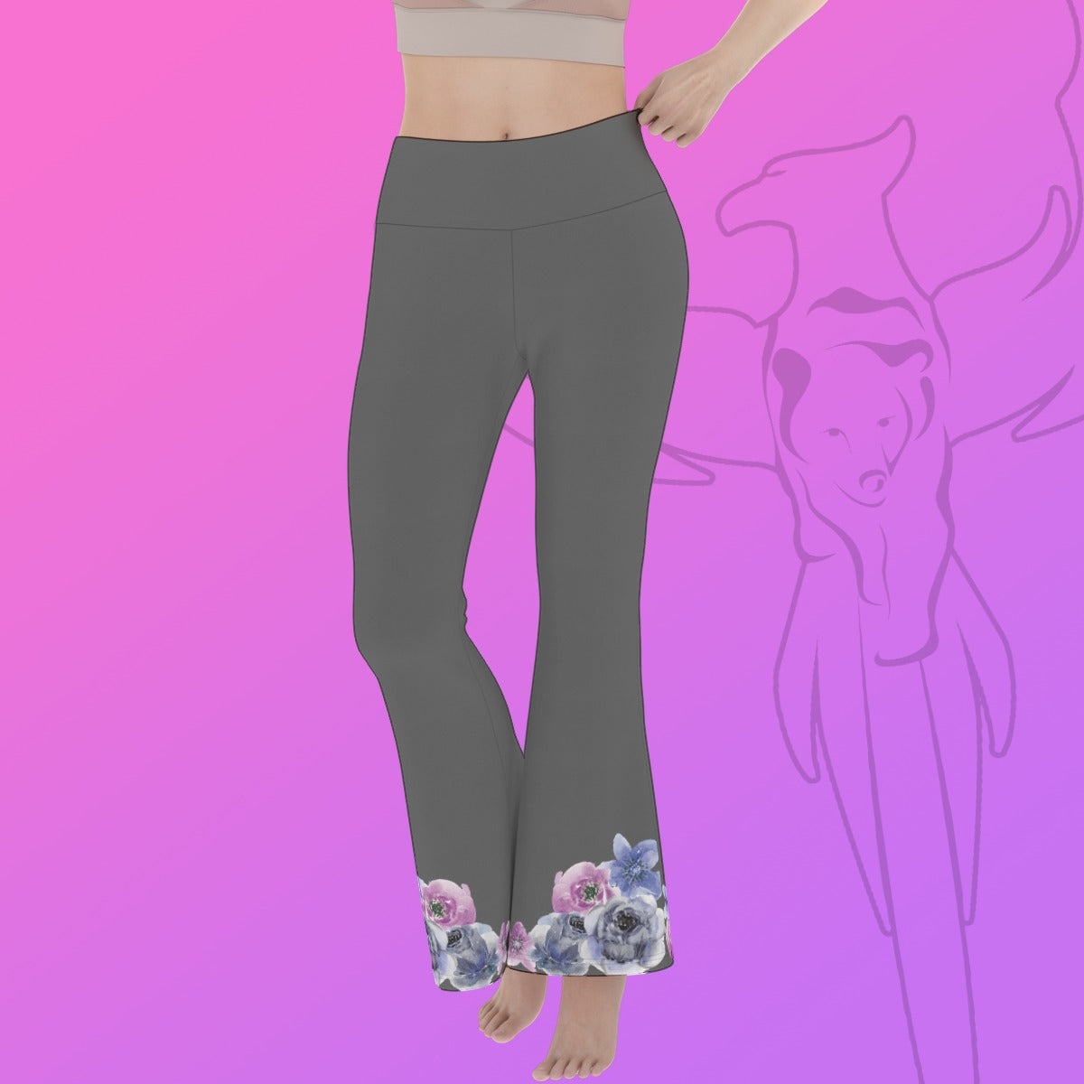 Grey Floral Trim Flare Yoga Pants