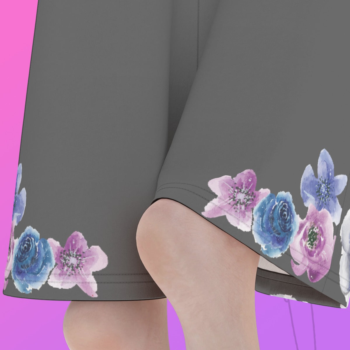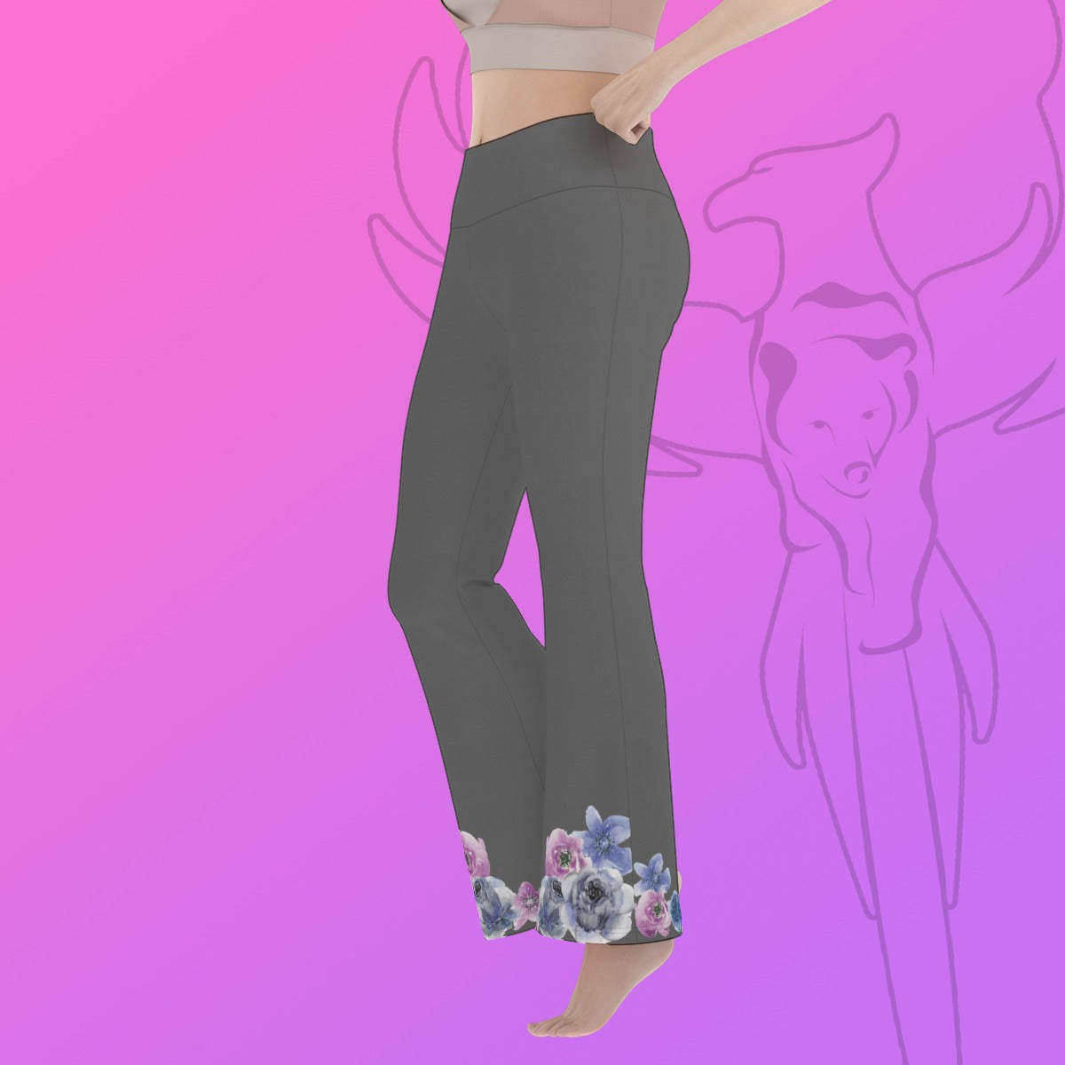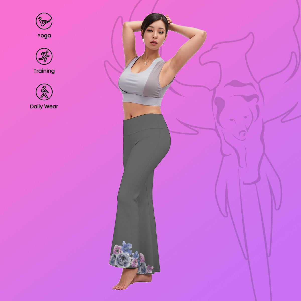 Grey Floral Trim Flare Yoga Pants