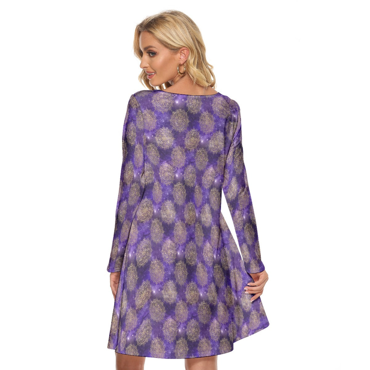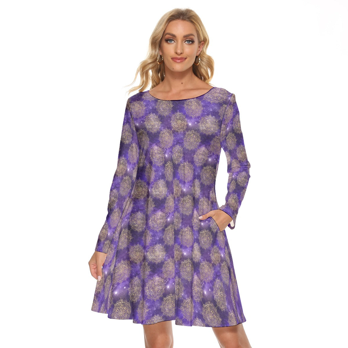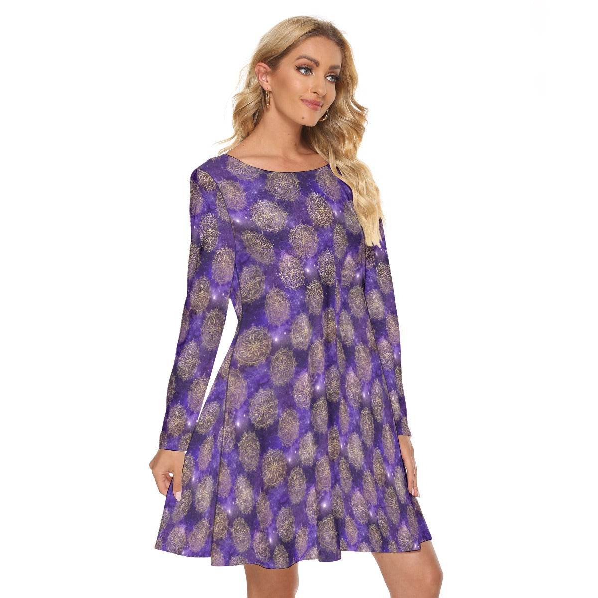 Purple design Crew Neck Dress