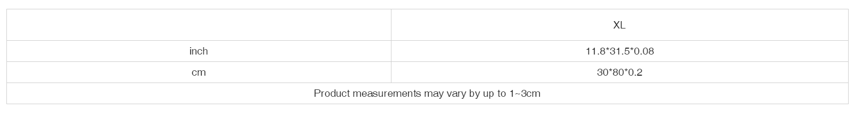 | inch | 11.8*31.5*0.08 |