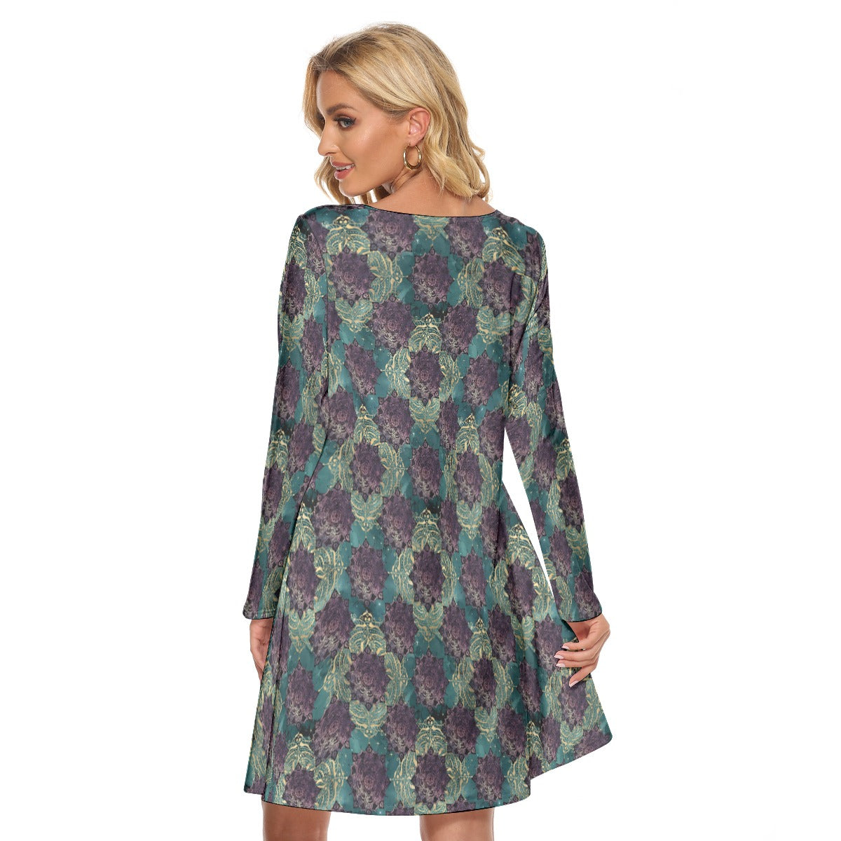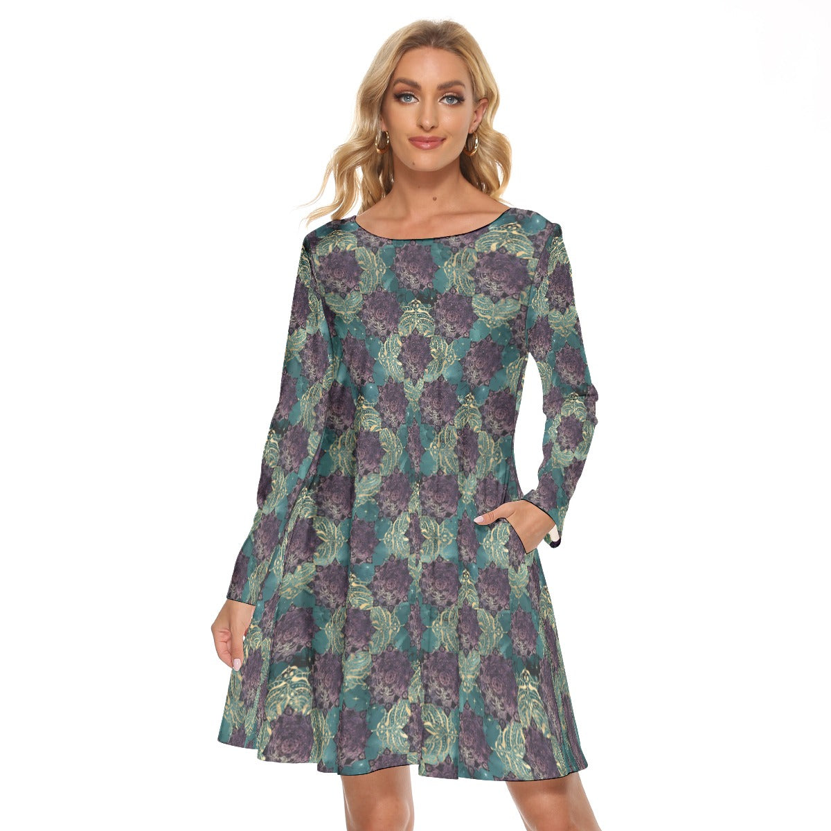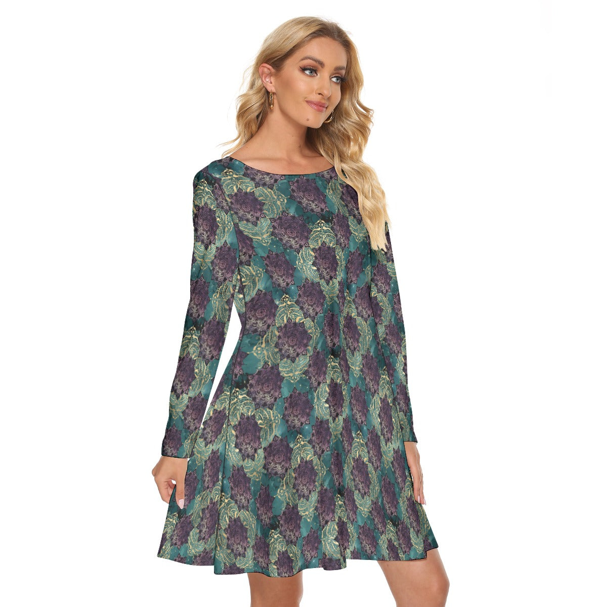 Teal and Gold Mandala Crew Neck Dress