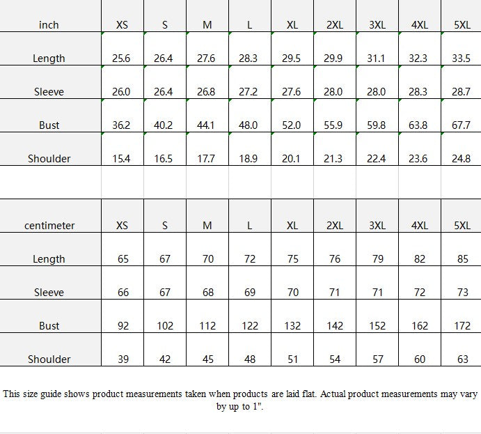 | inch | XS | S | M | L | XL | 2XL | 3XL | 4XL | 5XL |